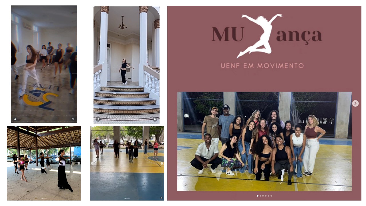 Dança: No projeto “MuDança na UENF”, tem-se a convicção de que a dança não é apenas uma série de movimentos físicos, mas sim uma forma de arte que nos conecta com nossas emoções mais profundas e com o mundo ao nosso redor, inspirado pela diversidade de estilos e técnicas, explorando a riqueza e a complexidade dessa forma de expressão.
