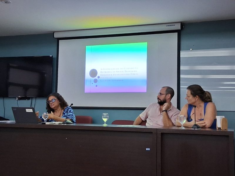 Na palestra foi debatida a centralidade do cuidado na reprodução da vida social e sua relação com as desigualdades de gênero, raça e classe no capitalismo.