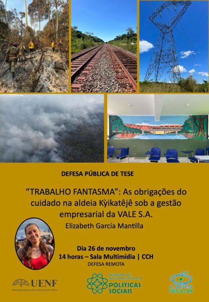 O Programa de Pós-Graduação em Políticas Sociais da UENF realiza nesta quarta-feira, 26/11/25, uma defesa de tese inusitada. A doutoranda Elizabeth García Mantilla vai estar defendendo sua tese de doutorado de forma remota, diretamente da aldeia Kykatêjê, localizada na Terra Indígena Mãe Maria, sudeste do Pará, onde vive o povo Gavião.