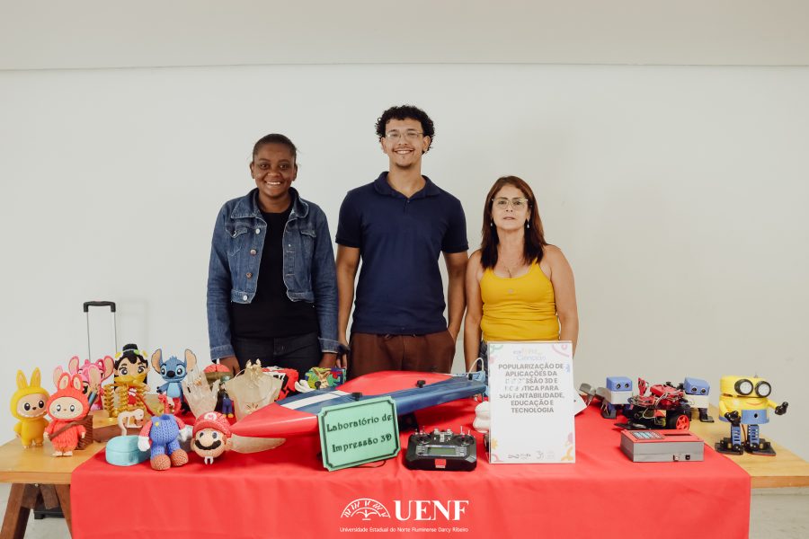 Um dos projetos apresentados foi o de “Popularização de Aplicações da Impressão 3D e Robótica para Sustentabilidade, Educação e Tecnologia”. O projeto é coordenado pelo professor da UENF Luiz Henrique Zeferino, que comentou sobre o que pode ser feito com uma impressora 3D, desde objetos estáticos a objetos em movimento, que são combinados com eletrônica.