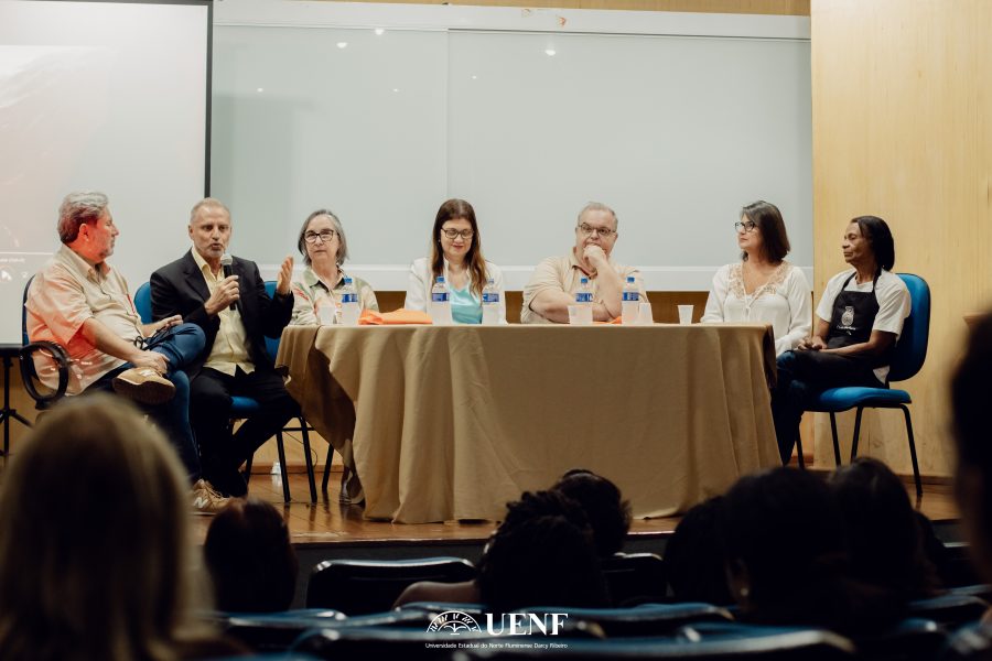 A mesa foi composta também pelo professor João Almeida, representando a pró-reitora de Extensão, professora Débora Guerra Barroso; a professora Marcia Giardinieri de Azevedo, diretora do Centro de Ciência e Tecnologia (CCT); Idamara Rizzo, diretora do projeto Caminhos de Barro; Vera Lúcia Ribeiro, representando todos os artesãos do projeto Caminhos de Barro; e o subsecretário de Turismo de Campos dos Goytacazes, Edvar Júnior. O evento teve ainda a participação na plateia do Auditório 4 de artesãos, docentes e discentes da UENF e público em geral.