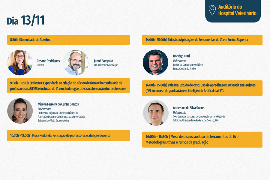 Os palestrantes apresentarão casos que vão desde a criação de um curso de graduação inovador até a estruturação de núcleos de formação docente, ilustrando como é possível integrar essas ferramentas e abordagens para modernizar, dinamizar e enriquecer o processo de ensino e aprendizagem.