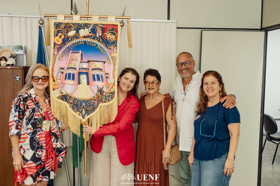 A Casa de Cultura Villa Maria ganhou, na manhã desta sexta-feira, 06/03/26, um estandarte feito pelas artesãs da Incubadora Tecnológica de Empreendimentos Populares (ITEP) — programa de extensão da UENF. O estandarte foi entregue por Célia Schreiber e Rita de Cássia Ramos Soares à reitora Rosana Rodrigues, à pró-reitora de Extensão Deborah Barroso e ao diretor de Cultura Giovane do Nascimento.