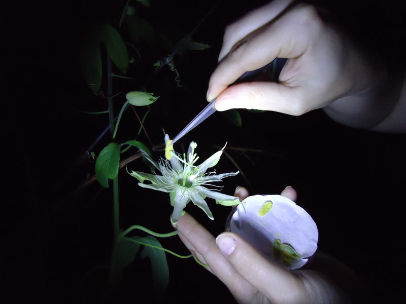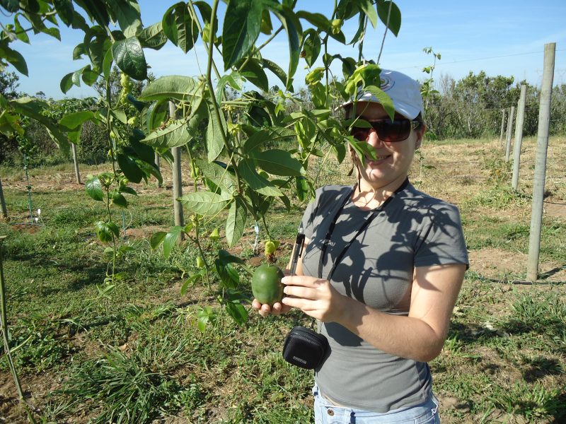 Hoje professora da Universidade do Estado de Mato Grosso (Unemat), Eileen Azevedo Santos foi a primeira pesquisadora a trabalhar com o melhoramento do maracujazeiro-azedo junto ao professor Alexandre Pio Viana. O ano era 2010, e Eileen era mestranda da Universidade Estadual de Santa Cruz (Uesc), na Bahia, quando conheceu o professor, que passou a ser seu co-orientador em estudos com espécies silvestres de Passiflora voltadas ao melhoramento ornamental.