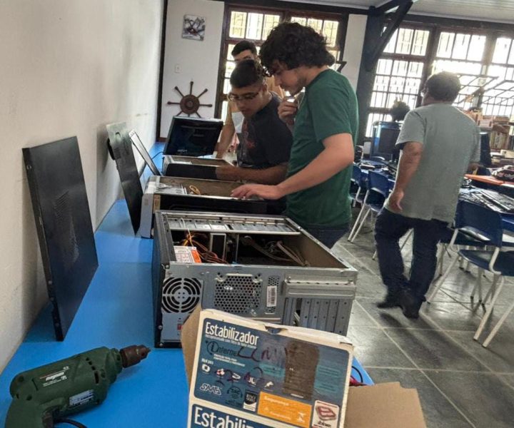 Na UENF, um grupo de estudantes do curso de Ciência da Computação, sob a coordenação do professor Luiz Ramirez, está mostrando como a tecnologia pode ser ferramenta de transformação social. O projeto “Recicla Computadores” nasceu da observação de que diversos equipamentos antigos estavam sem uso nos laboratórios da instituição e poderiam ganhar fins úteis à sociedade.