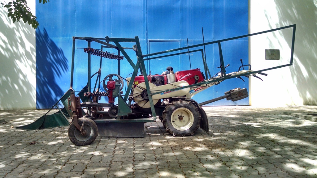 De baixo custo, com a capacidade de cortar e tombar uma linha da cultura, uma primeira versão do protótipo é resultado da tese orientada pelo professor Ricardo Ferreira Garcia e apresentada em fevereiro de 2014 por José Francisco Sá Vasconcelos Junior ao Centro de Ciências e Tecnologias Agropecuárias (CCTA) da UENF, como parte das exigências para obtenção do título de Doutor em Produção Vegetal, com ênfase em Mecanização Agrícola.