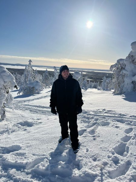 Caio em seu primeiro dia de campo em um parque natural da Finlândia