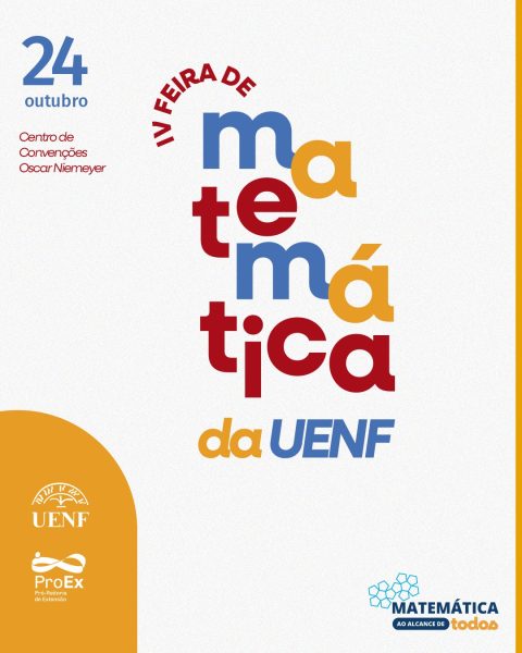 A IV Feira de Matemática da UENF acontecerá nesta sexta-feira, 24/10/25, reunindo estudantes, professores e a comunidade em mais uma edição dedicada à popularização do conhecimento matemático.