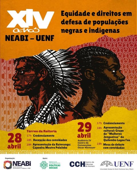 O Núcleo de Estudos Afro-brasileiros e Indígenas da Universidade Estadual do Norte Fluminense Darcy Ribeiro (NEABI – UENF) realiza, nos dias 28 e 29 de abril, a programação comemorativa de seu XIV aniversário, com o tema “Equidade e direitos em defesa das populações negras e indígenas”. O evento reafirma o papel do núcleo como espaço estratégico de produção de conhecimento, articulação política e promoção de ações voltadas à justiça social, à valorização das culturas afro-brasileiras e indígenas e ao enfrentamento das desigualdades raciais.