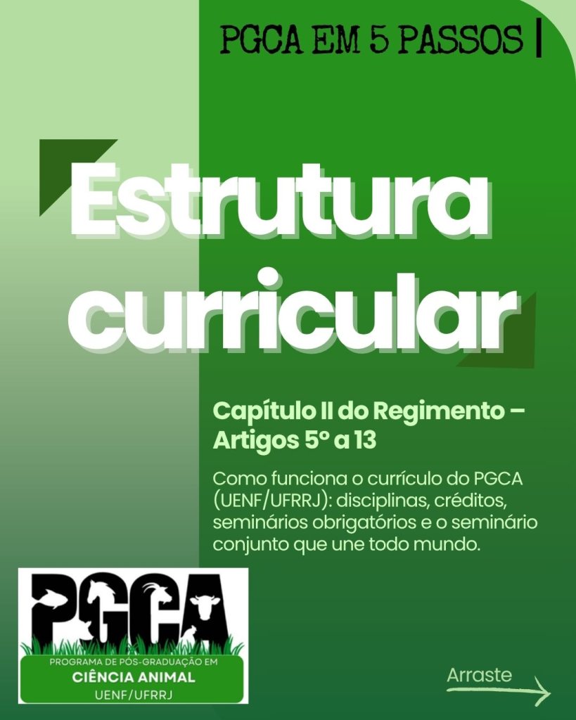 O Programa em Rede de Pós-Graduação em Ciência Animal (PGCA UENF/UFRRJ) lança a série “PGCA em 5 Passos” — uma iniciativa de comunicação clara e acessível para descomplicar os processos acadêmicos mais importantes do programa.