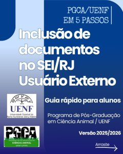 Prático, visual e objetivo, o material foi feito para quem está no mestrado ou doutorado em Ciência Animal na UENF e quer resolver dúvidas rapidamente, sem complicação.