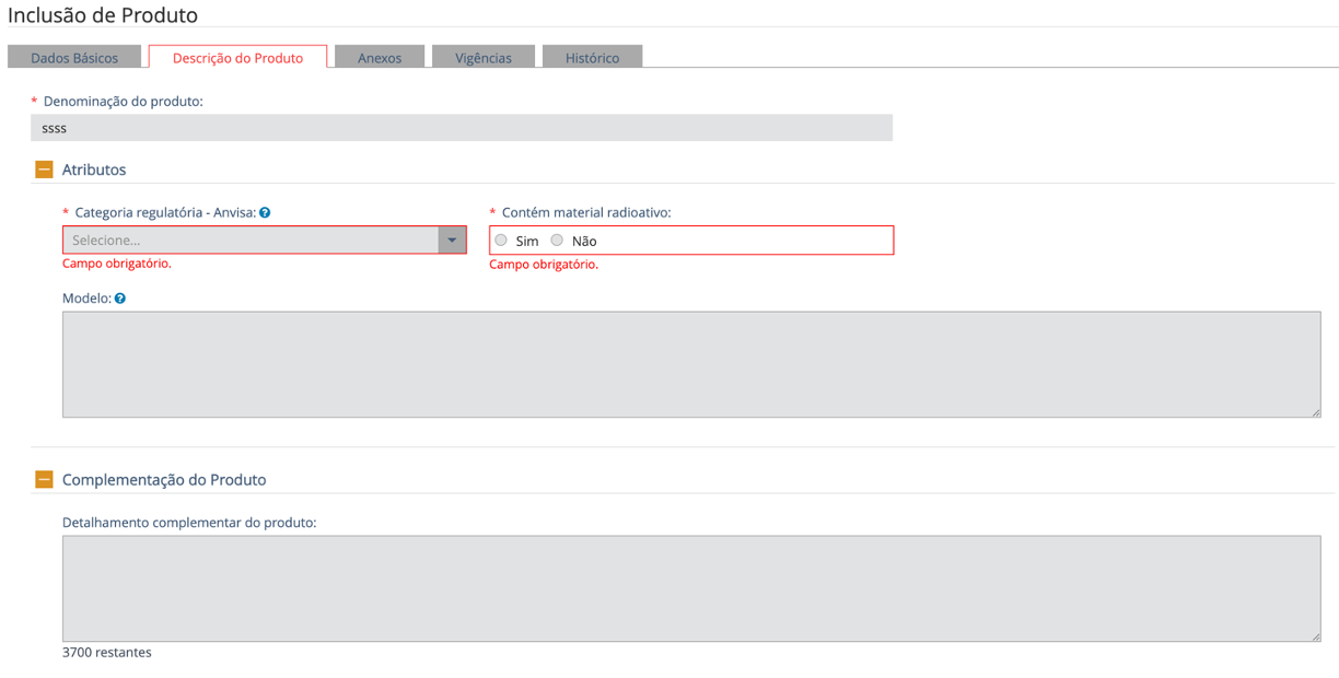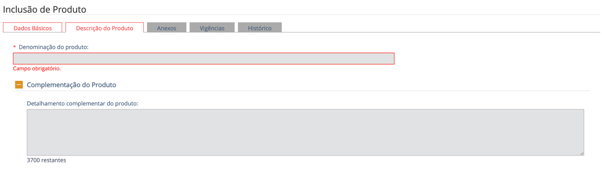 Denominação do Produto: Fazer uma descrição simples para dentificação básica do produto (ex: “Câmera de Segurança IP”).