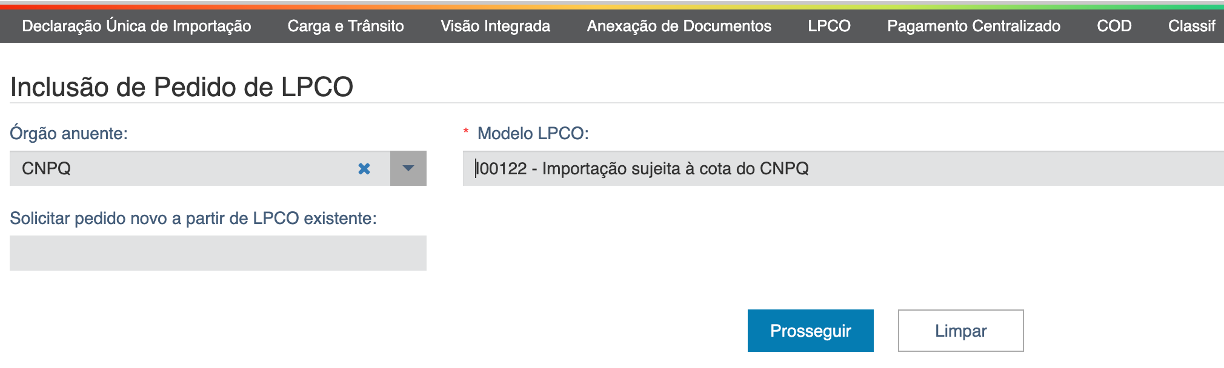 Para informações detalhadas consulte o Manual LPCO Importação (atualizado em 27/08/2025)